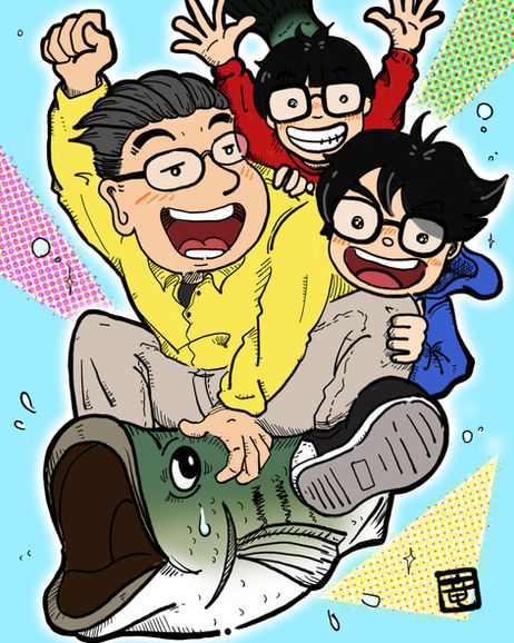 ブラックバス釣りからイメージを膨らませて、イラストを描かせていただきました。
